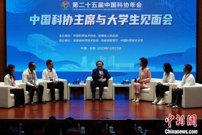 作为第二十五届中国科协年会重点活动之一,中国科协主席与大学生见面会10月23日下午在位于合肥的中国科学技术大学举行。万钢与来自中国科学技术大学、合肥工业大学、安徽大学、安徽农业大学、安徽医科大学、安徽中医药大学、安徽建筑大学、合肥师范学院、合肥学院、巢湖学院等10所在皖高校的200多名优秀大学生代表欢聚一堂,展开一场热烈互动的面对面交流。