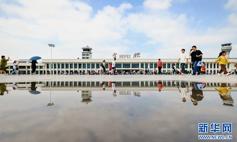 ??9月30日,市民和游客在合肥园博园的标志性景点航站楼广场游玩。新华网发(解琛 摄)
