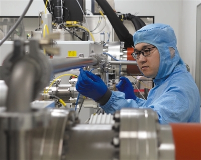 在合肥本源量子计算科技有限责任公司生产车间,技术人员正在进行生产操作。