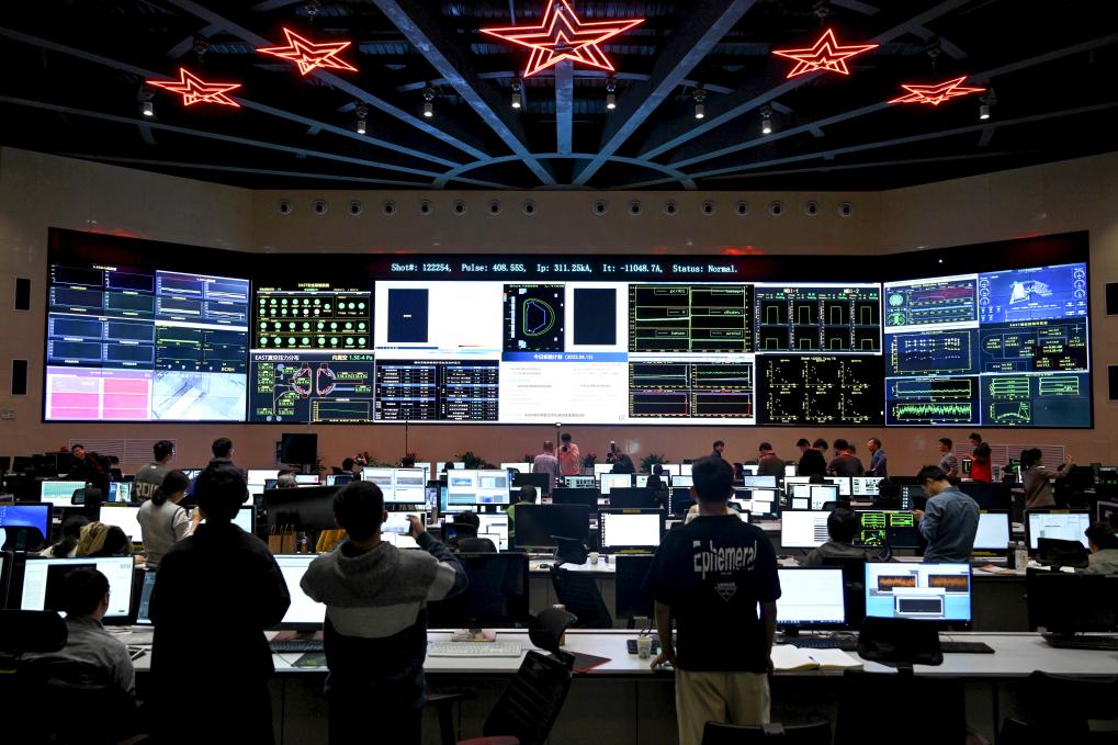 这是实验成功后的全超导托卡马克核聚变实验装置(EAST)控制大厅(2023年4月12日摄)。(配本社同题文字稿)新华社记者 黄博涵 摄