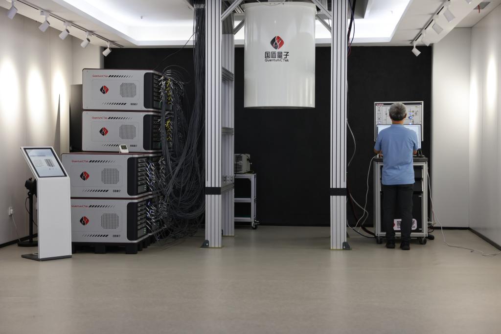 2023年7月21日,国盾量子首席科学家彭承志在位于安徽合肥的科大国盾量子技术有限公司展厅操作“祖冲之二号”同款超导量子计算机。(配本社同题文字稿)新华社记者 金立旺 摄