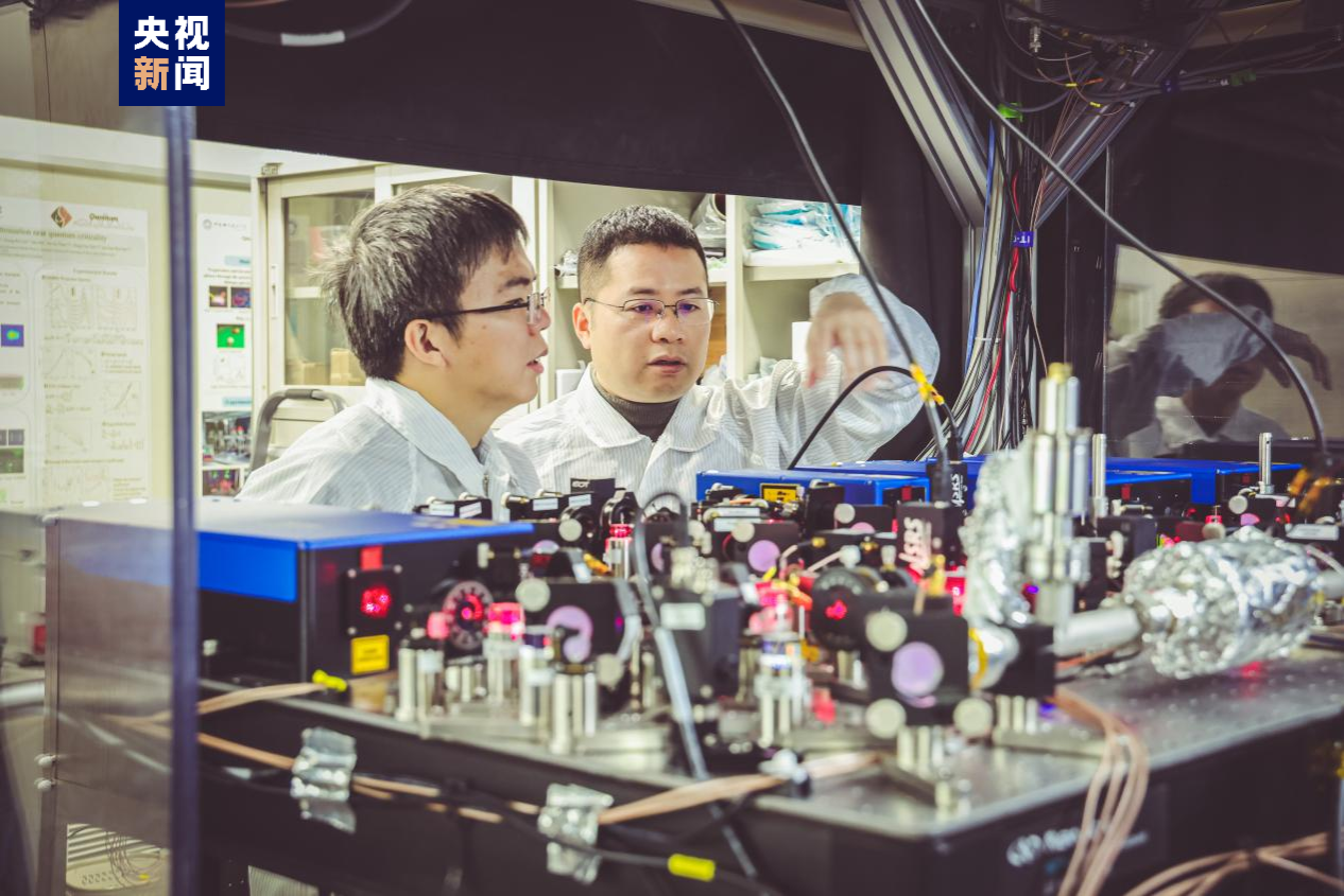 △中国科学技术大学姚星灿、陈宇翱在实验室开展科研工作