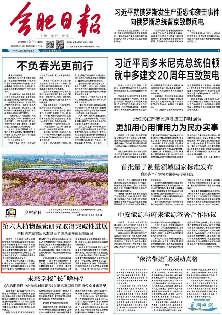 【合肥日报】第六大植物激素研究取得突破性进展 中国科大研究团队发现首个油菜素内酯运输蛋白