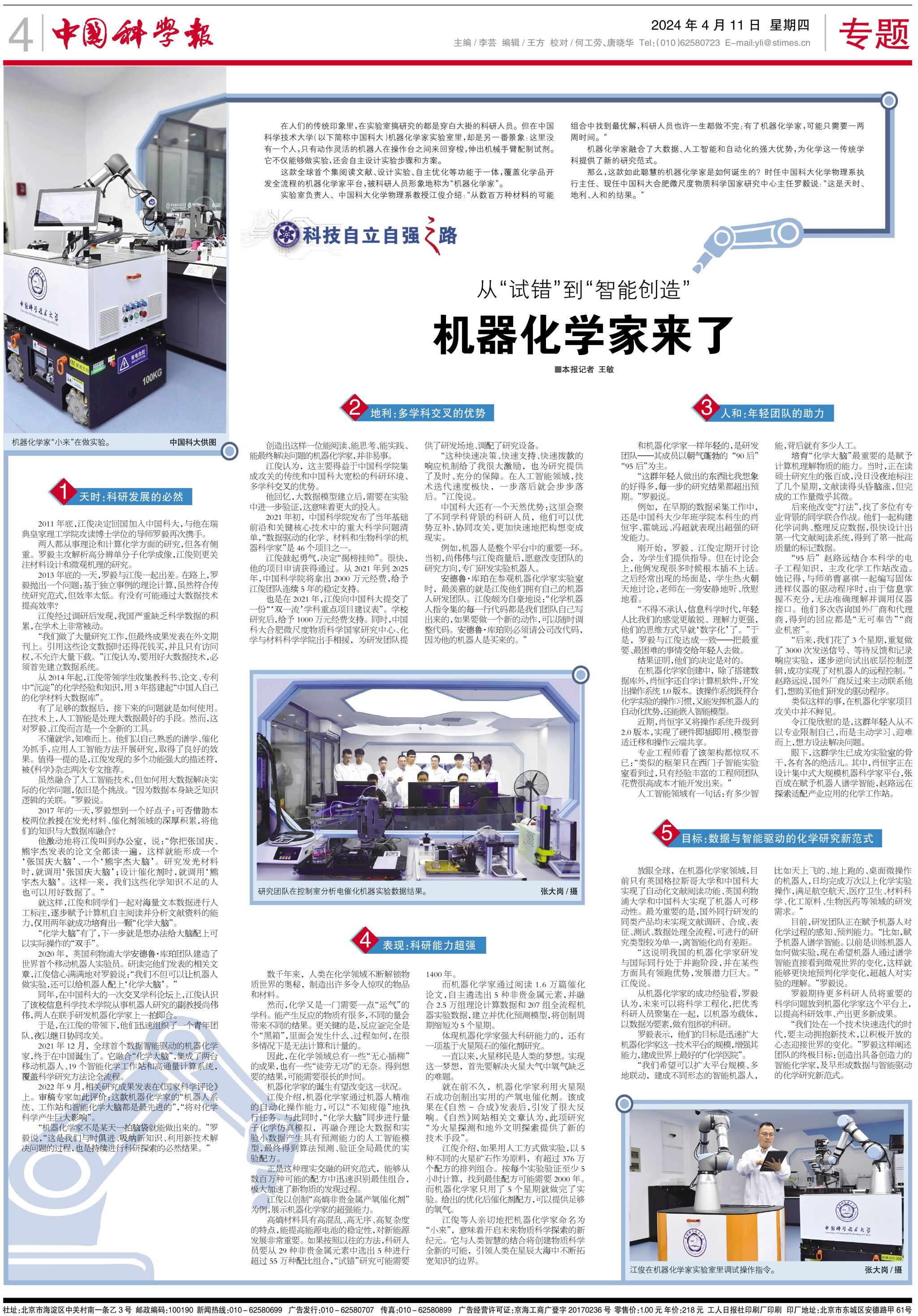 “机器化学家不是某天一拍脑袋就能做出来的。”罗毅说,“这是我们与时俱进、吸纳新知识、利用新技术解决问题的过程,也是持续进行科研探索的必然结果。”