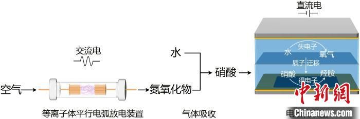 曾杰介绍,他们研发的等离子体平行电弧放电装置,通过耦合电催化,可以在温和条件下打破氮气分子中的惰性化学键,实现在常温常压条件下的高效固氮和定向催化转化。