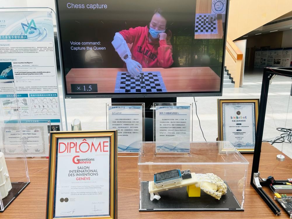 2024年6月18日,活动现场展示的仿生灵巧手,也是人形机器人的重要部件。新华社记者 周畅 摄