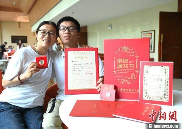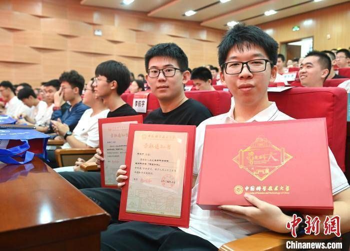 7月19日,在中国科学技术大学水上报告厅,73位本科新生代表领取了2024年首批本科录取通知书,部分新生代表的父母和中学老师也受邀到校园见证。后续该校将有近2000封本科录取通知书发往全国各地。图为新生展示录取通知书。 中新社记者 韩苏原 摄