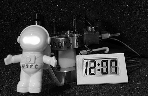 火星电池为宇航员模型和电子表供电。中国科学技术大学供图