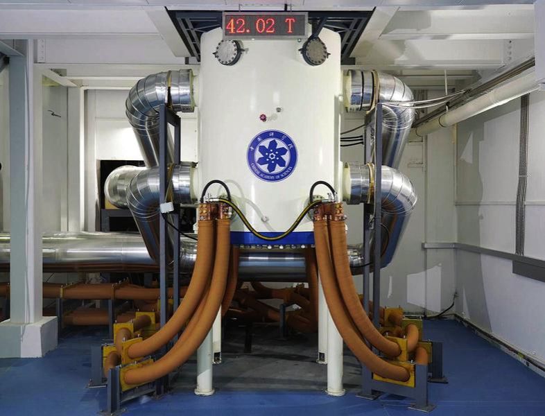 本报讯 9月22日,中国科学院合肥物质科学研究院强磁场科学中心自主研制的水冷磁体产生了42.02万高斯(即42.02特斯拉)的稳态磁场,打破了2017年由美国国家强磁场实验室水冷磁体产生的41.4万高斯的世界纪录,成为国际强磁场水冷磁体技术发展新的里程碑。这也是稳态强磁场实验装置继2022年混合磁体成功创造45.22万高斯的世界稳态磁场纪录之后,取得的又一项重大技术突破。