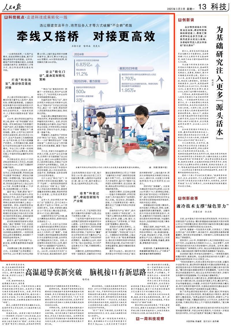 牵线又搭桥,串起产学研。如今,越来越多的技术经理人活跃在科技成果转化一线,畅通创新链、产业链、资金链和人才链,为发展新质生产力注入强劲动力。
