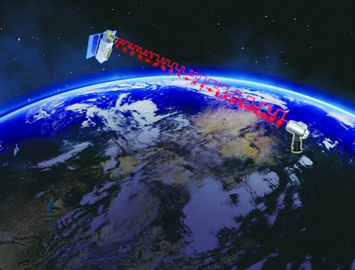 量子微纳卫星“济南一号”星地量子密钥分发实验示意图。中国科学技术大学供图
