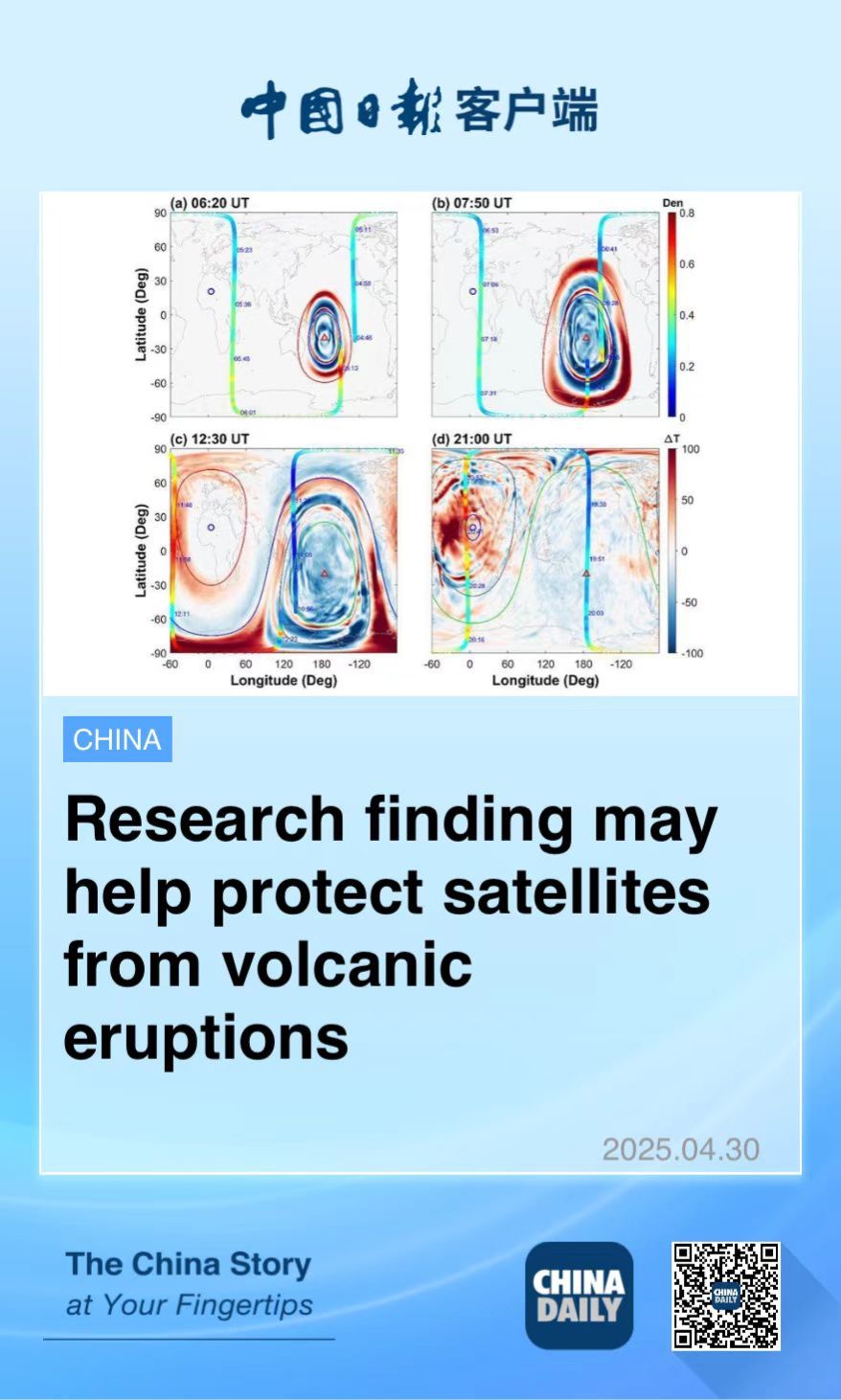 "By detecting and modeling how atmospheric waves triggered by surface events disturb the upper atmosphere, we can better predict sudden increases in atmospheric drag that affect satellite orbits," said Lei Jiuhou, director of the research team.
