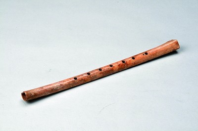 河南博物院展柜里的贾湖骨笛,比成人的手掌略长,通体呈棕褐色,晶莹光滑,7个大小相近的圆孔排列有序,形制跟现在的管乐器笛子相似。它用鹤类禽鸟骨头制成,今天依然能演奏,是迄今为止中国发现的时代最早的可吹奏管乐器,将中国音乐史的起源时间提前到了8000多年前的新石器时期。