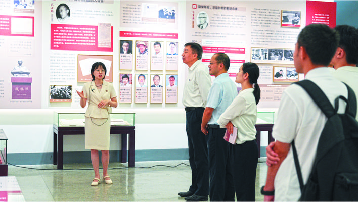 这些并不宏大的细节,缓缓流淌在展览第一部分的介绍中。它以“教育家精神”的六大内涵为线索,串联起六位与中国科大渊源深厚的教育家——郭沫若、严济慈、钱学森、华罗庚、钱临照、武汝扬。